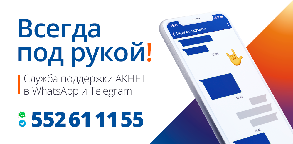 - Чат-поддержка АКНЕТ WhatsApp/Telegram 0(552) 61 11 55